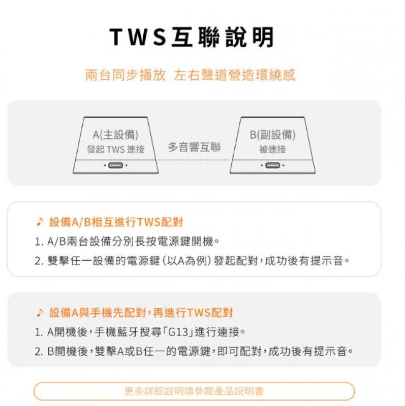 ・TWS串聯技術兩台喇叭可實現雙聲道